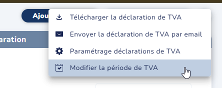 Sélectionnez les 3 points en haut, puis “Modifier la période de TVA”.