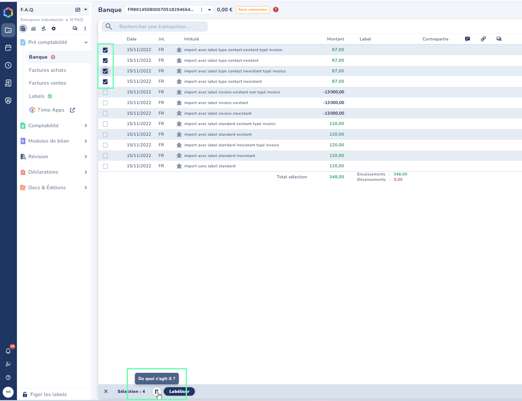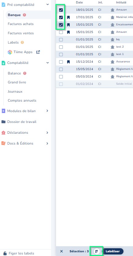 💡Vous pouvez également faire une demande massive de document, en sélectionner les opérations bancaires concernées, puis en cliquant sur "demander des justificatifs" en bas de la page.
