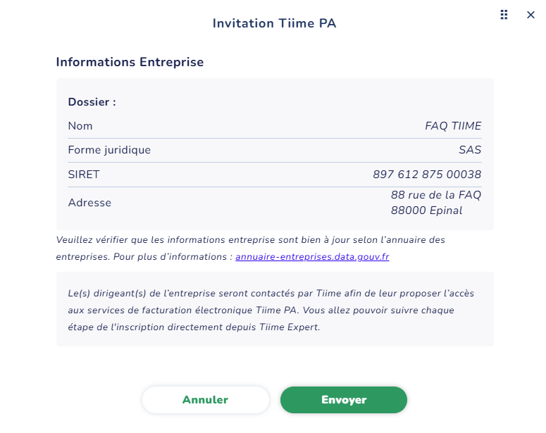 Au clic, une fenêtre vous demandera de vérifier les informations avant d'envoyer la demande à votre client.
