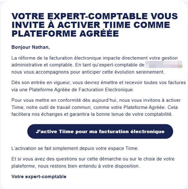 Un mail sera envoyé à votre client pour lui permettre d'activer la PA.