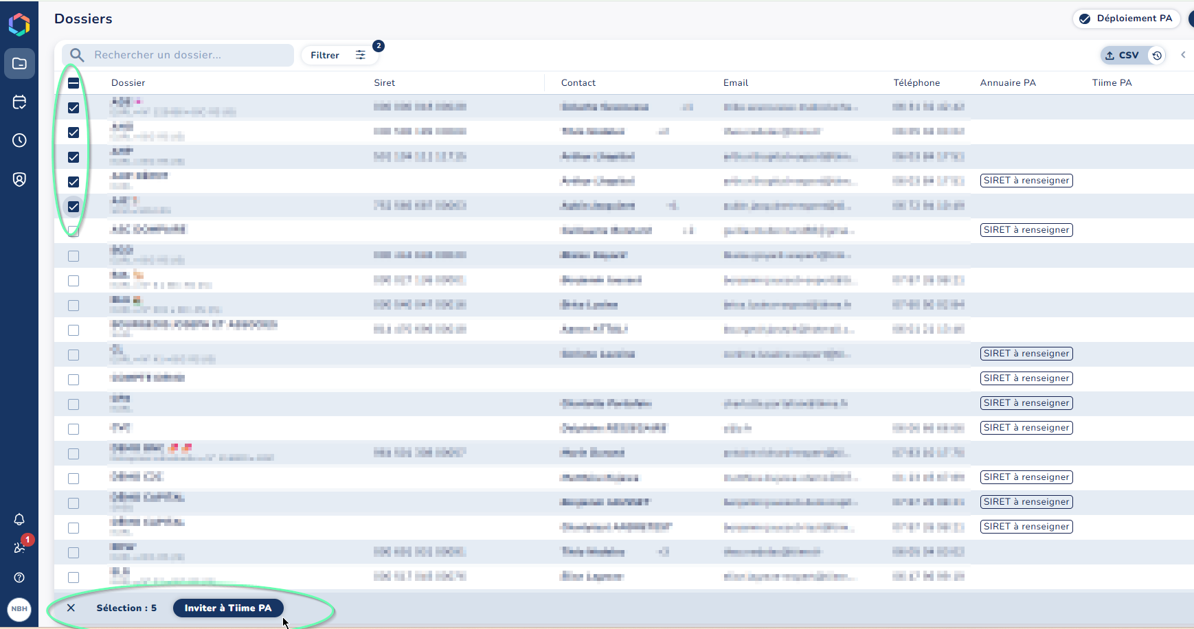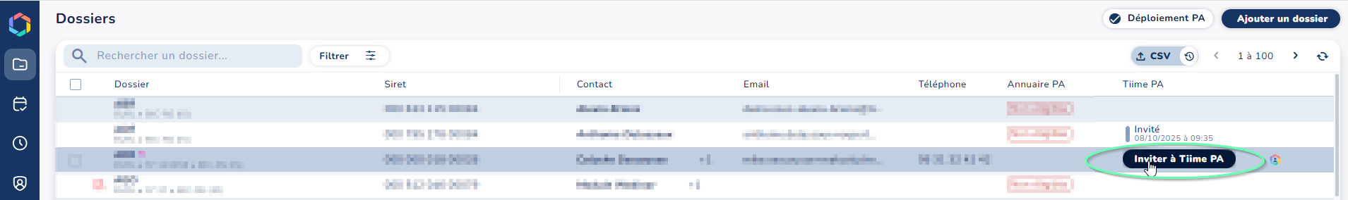 En sélectionnant plusieurs dossiers, vous pourrez lancer des invitations en masse.