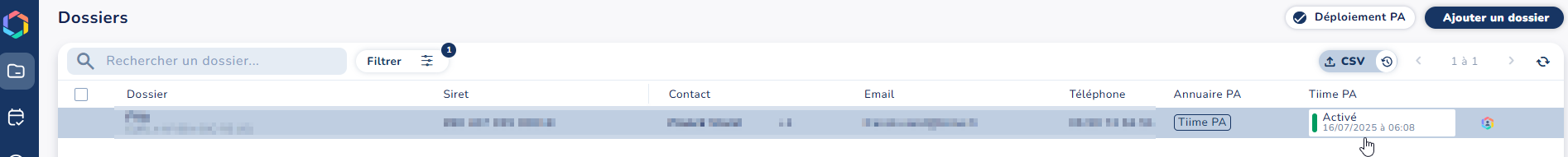 Depuis le même endroit, vous pourrez consulter l'état de la PA sur vos dossiers. Pour cela, il faudra cliquer sur le bouton "Déploiement PA" en haut à droite de la page.