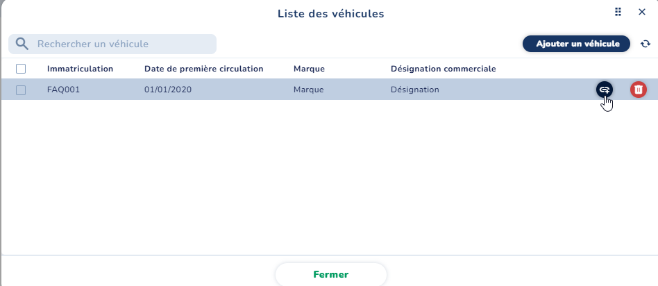 Il vous sera aussi possible de lier les véhicules directement depuis la liste des véhicules :