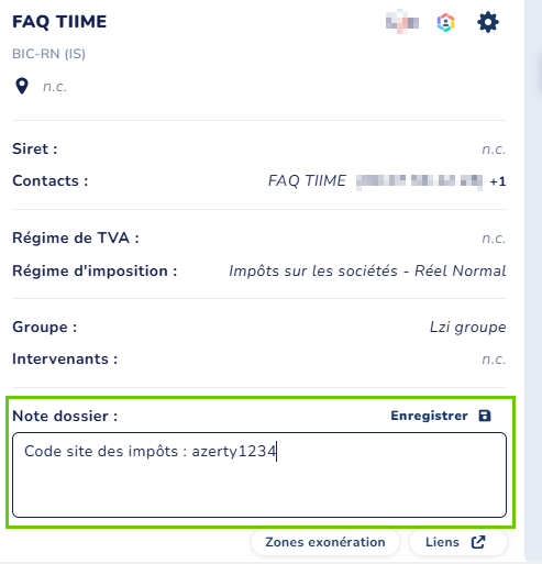 Vous avez la possibilité d'ajouter une note dossier depuis le bouton "Fiche dossier" situé à cet endroit.